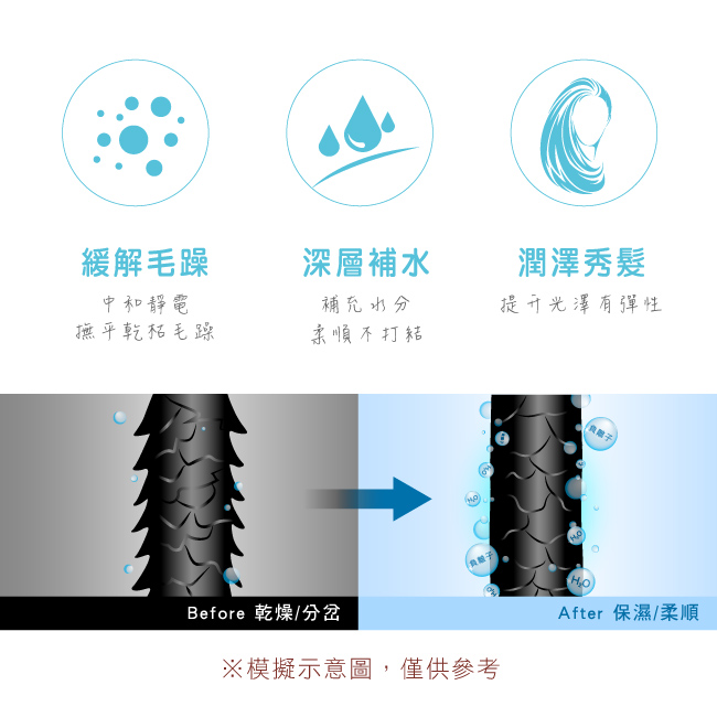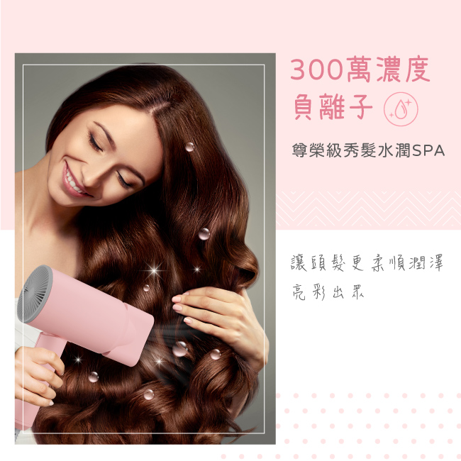 - 百萬高濃度負離子,尊榮級秀髮水潤SPA