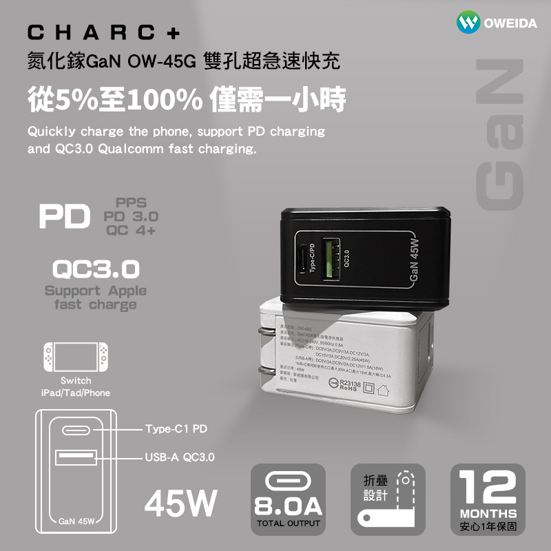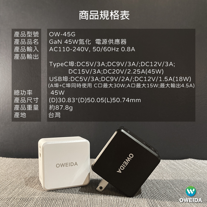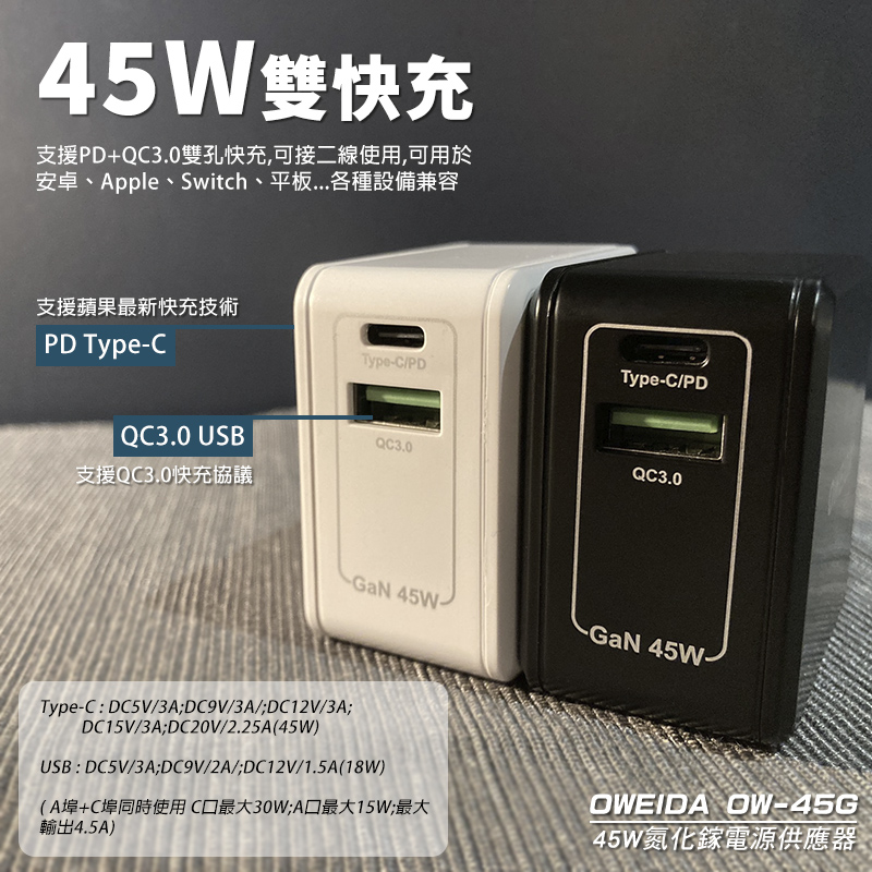 ( A埠+C埠同時使用 C口最大30W;A口最大15W;最大輸出4.5A)