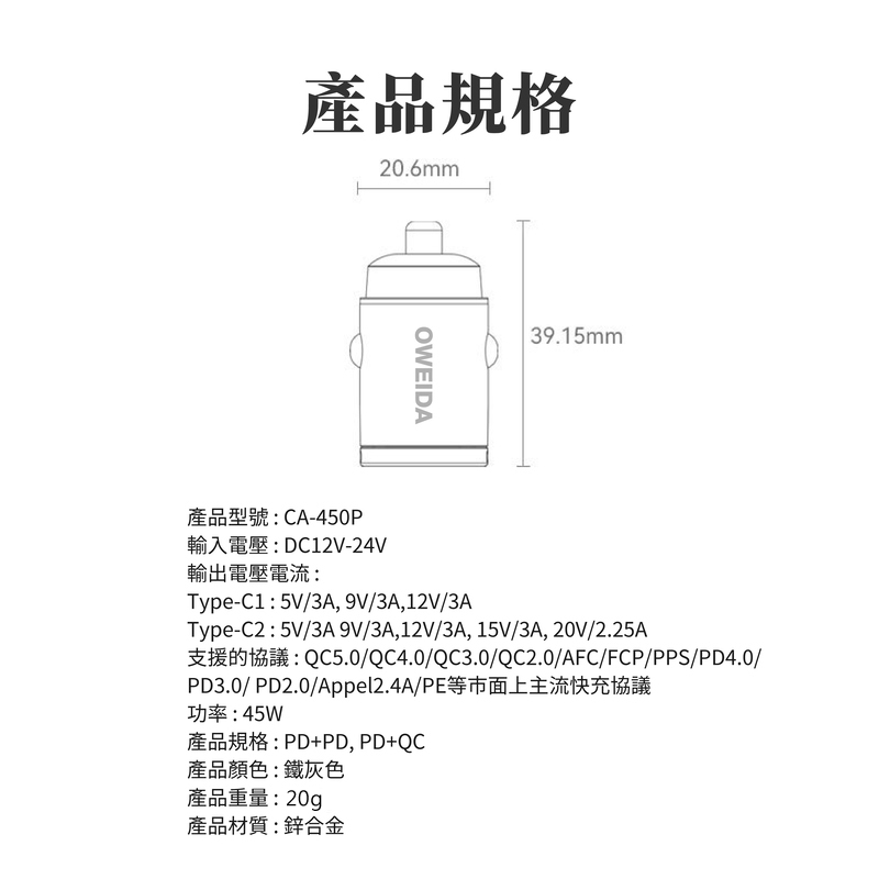 Type-C2 : 5V/3A ; 9V/3A ; 12V/3A ; 15V/3A ; 20V/2.25A