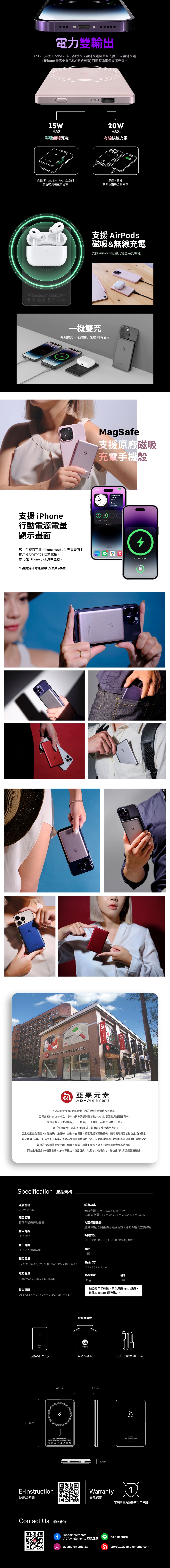 - 支援快充輸出,最高可達20W快充,以及無線輸出15W (iPhone 支援7.5W),可同時輸出一機雙用