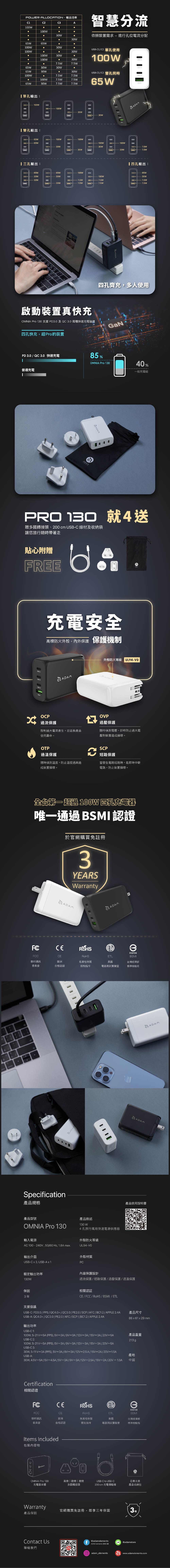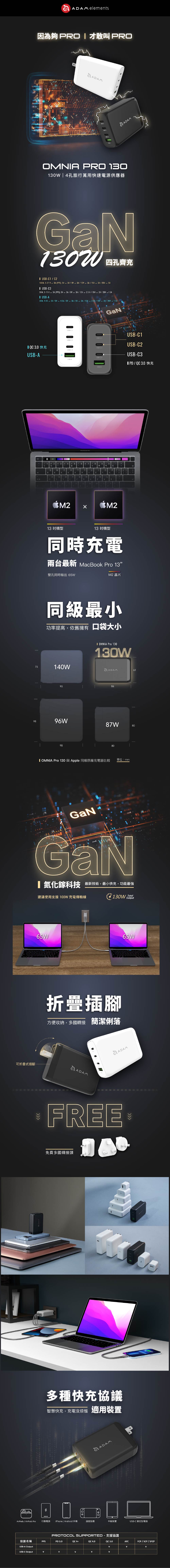 - 革新技術氮化鎵驅動,僅手掌大小卻能提供130W的最大電源輸出,是你最完美的迷你充電站