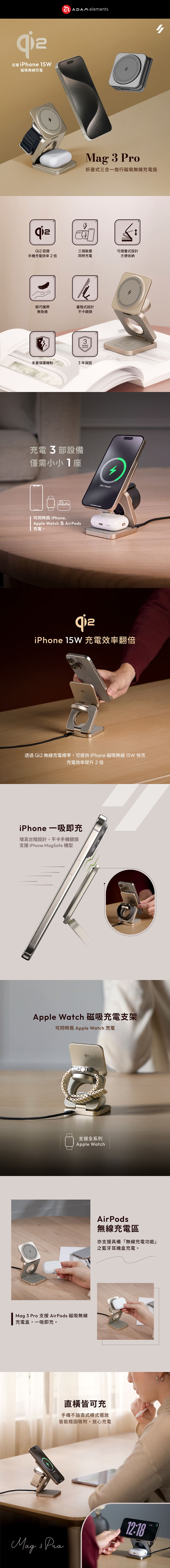 - 兼具時尚及功能性的三合一設計,同時為你的iPhone.Apple Watch提供快速充電,以及AirPods充飽電。