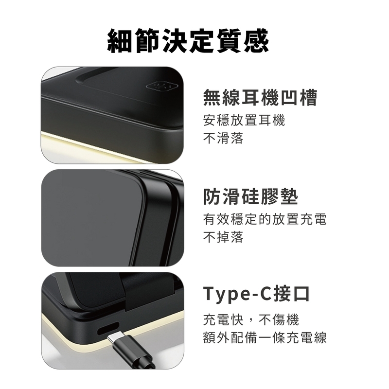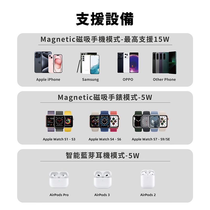 產品同時使用 : 手機端15W+耳機端5W+手錶端2W 共22W