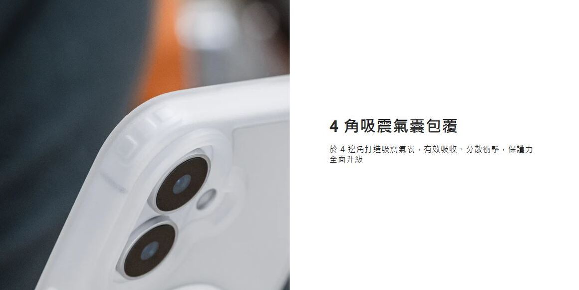 - 4 角吸震氣囊包覆:於 4 邊角打造吸震氣囊,有效吸收、分散衝擊,保護力全面升級。