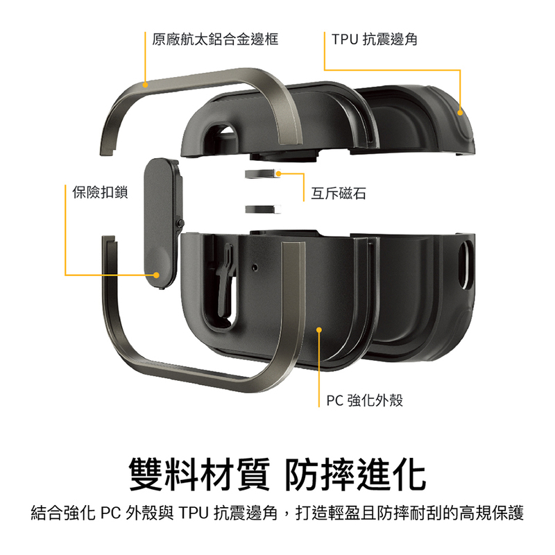 Apple 原廠同級航太鋁合金邊框,透過頂級工藝打造質感細節。 - 雙料材質,防摔進化