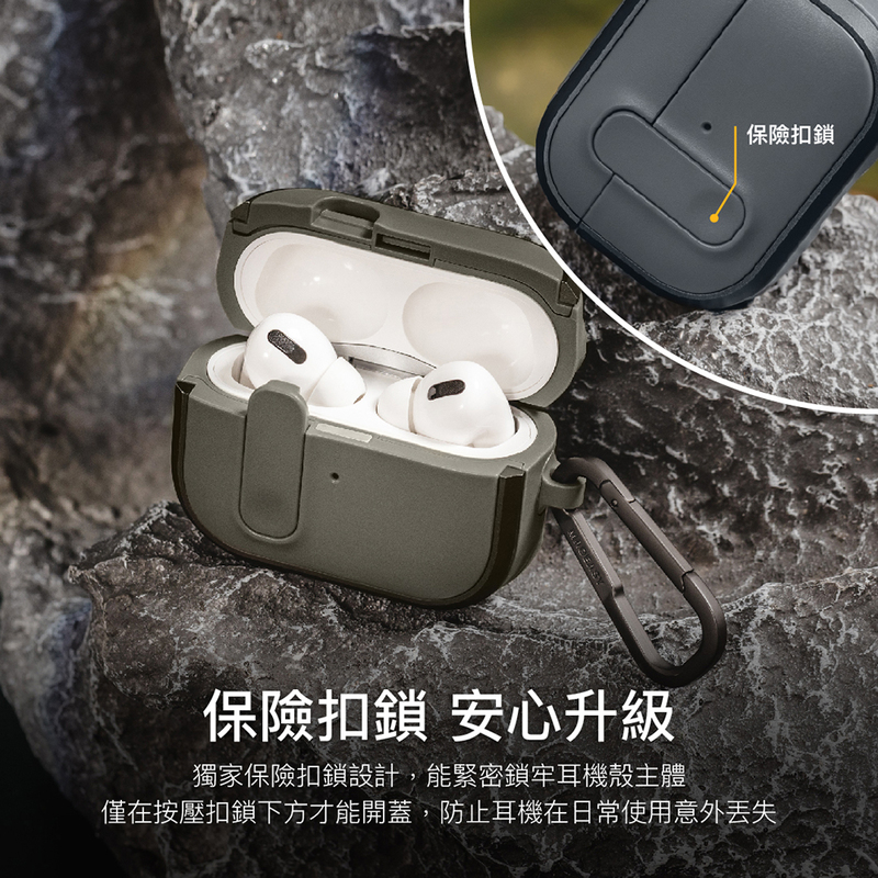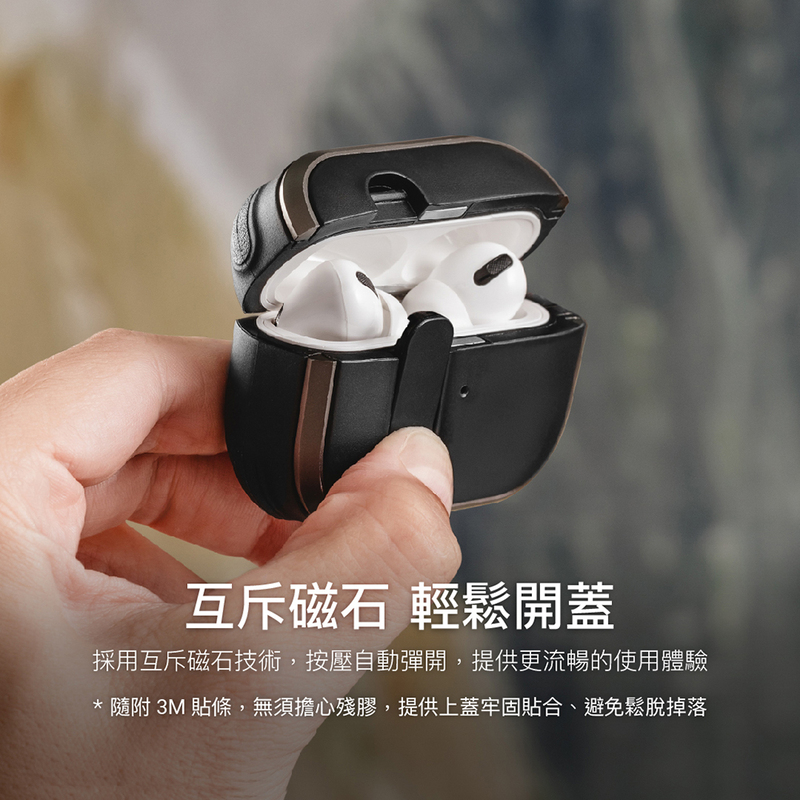 獨家保險扣鎖設計,能緊密鎖牢耳機殼主體,僅在按壓扣鎖下方才能開蓋,防止耳機在日常使用意外丟失。 - 互斥磁石,輕鬆開蓋