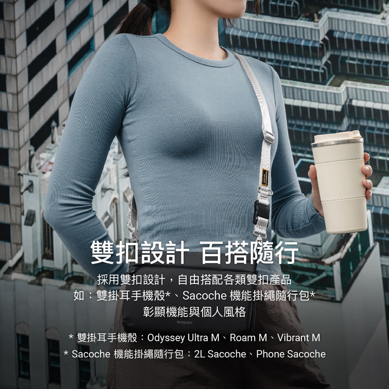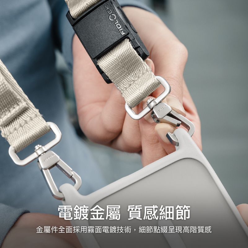 採用雙扣設計,自由搭配各類雙扣產品,如:雙掛耳手機殼、Sacoche 機能掛繩隨行包,彰顯機能與個人風格 - 電鍍金屬 質感細節