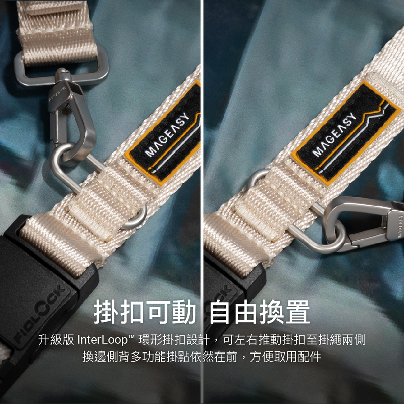 升級版 InterLoop™ 環形掛扣設計,可左右推動掛扣至掛繩兩側,換邊側背多功能掛點依然在前,方便取用配件 - 配件小物 隨扣隨取