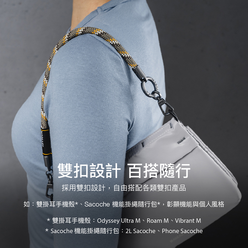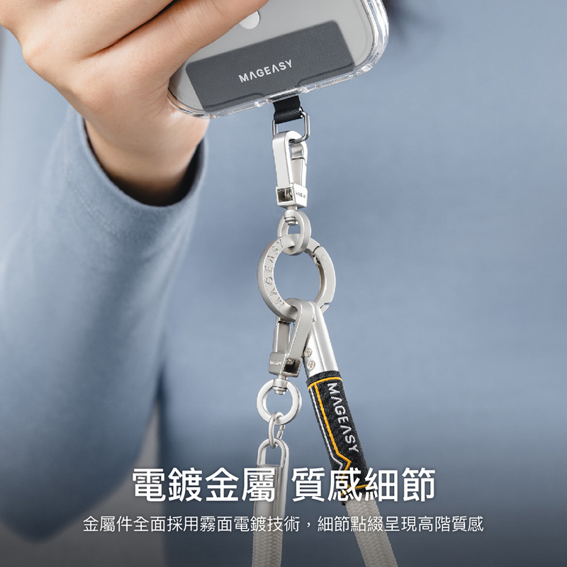 金屬件全面採用霧面電鍍技術,細節點綴呈現高階質感 - 360度旋轉金屬扣環方便易拆卸